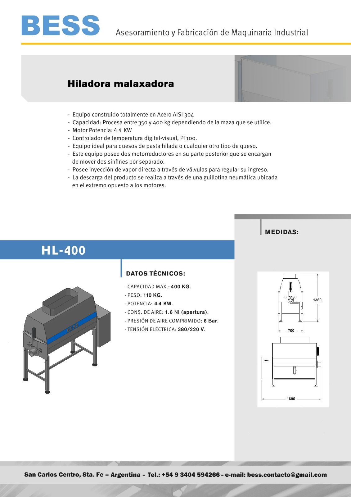 Equipo construido totalmente en Acero AISI 304